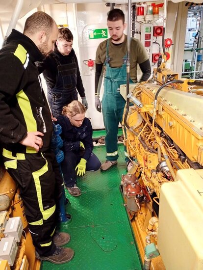 Ze względu na to, że Odra jest obecnie skuta lodem, młodzież nie może jeszcze realizować szkoleń nawigacyjnych. Ten czas uczniowie wykorzystują na intensywną pracę w maszynowni, gdzie pod okiem doświadczonych członków załogi zdobywają szlify zawodowe, poznają budowę i obsługę urządzeń okrętowych oraz doskonalą zasady bezpieczeństwa i pracy zespołowej.