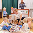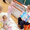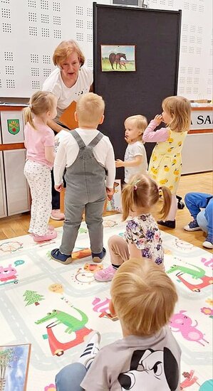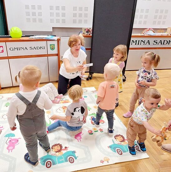 Spotkanie rozpoczęło się od rozmowy o zwierzętach, dzieci starały się odgadnąć jak nazywają się mamy poszczególnych stworzeń. Nie mogło zabraknąć naśladowania dźwięków, jakie one wydają.