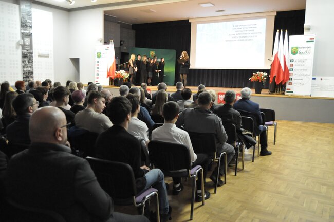 Zebranych gości powitała dyrektor Gminnego Ośrodka Kultury w Sadkach Iwona Biniak. Okolicznościowe przemówienia wygłosili wójt Gminy Sadki Michał Piszczek oraz przewodniczący Rady Miejskiej Andrzej Niedbała.