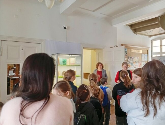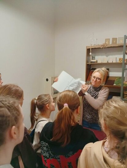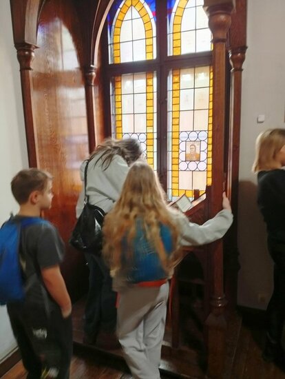 Po emocjonujących zajęciach udaliśmy się do Wojewódzkiej i Miejskiej Biblioteki Publicznej im. W. Bełzy w Bydgoszczy. Podzieleni na dwie grupy zwiedziliśmy zabytkową Bibliotekę Bernardynów oraz imponujący magazyn, w którym znajduje się aż 500 000 książek! Pani bibliotekarka zaprezentowała nam niezwykłe egzemplarze – od najmniejszych książeczek po te największe, a nawet książkę w formie… butelki!