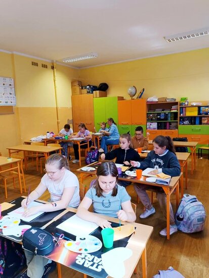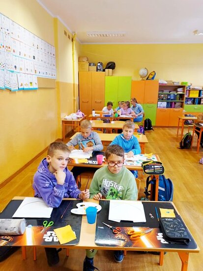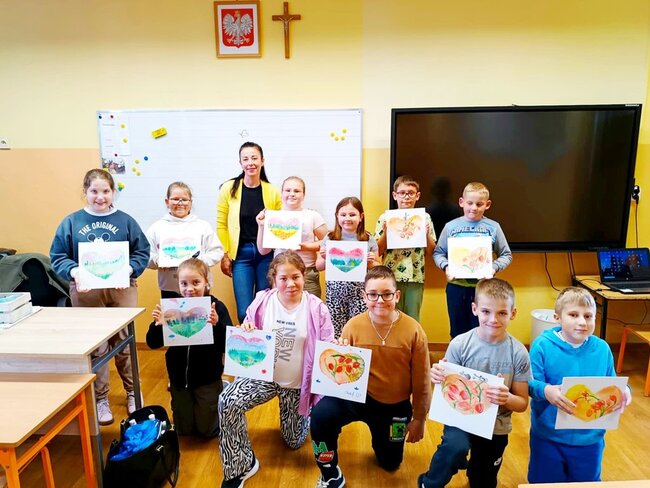 Zajęcia zakończyły się uśmiechem na twarzy i obietnicą, że kolejne takie warsztaty na pewno się odbędą. Uczniowie opuścili salę zadowoleni, niosąc ze sobą swoje wyjątkowe obrazy, które będą pięknym prezentem.