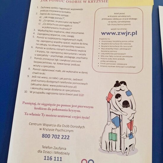 W wydarzeniu wzięli udział uczniowie klas 3LT, 1HTO oraz 3HT. Podczas spotkania specjaliści rozmawiali z młodzieżą o tym, czym jest zdrowie psychiczne, jak radzić sobie ze stresem i trudnymi emocjami oraz gdzie szukać pomocy w sytuacjach kryzysowych. Poruszono także temat budowania poczucia własnej wartości, relacji rówieśniczych oraz znaczenia rozmowy i wsparcia ze strony innych osób.