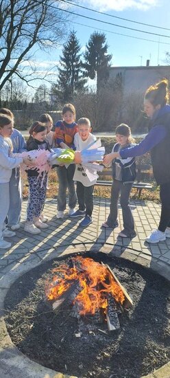 Na koniec, zgodnie z tradycją, spaliliśmy naszą Marzannę, którą wykonaliśmy w zeszłym tygodniu. Symbolizuje ona pożegnanie zimy i powitanie wiosny.