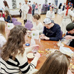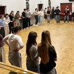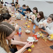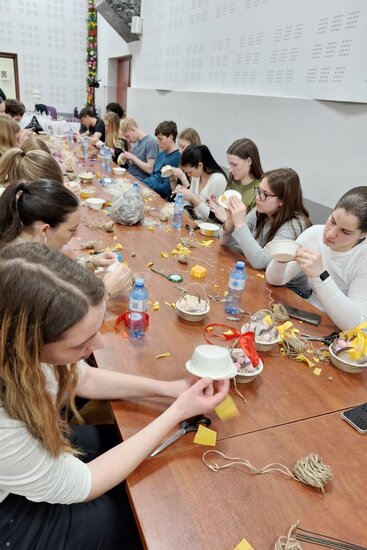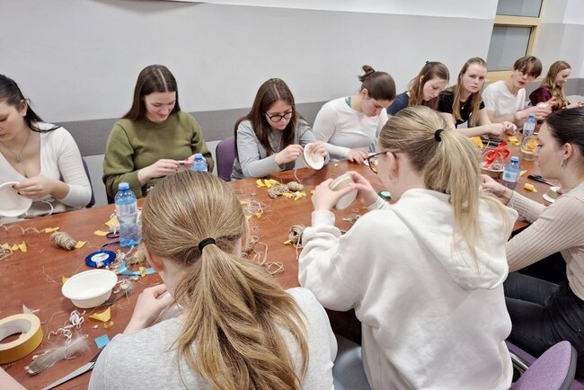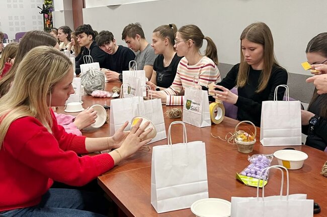 Nasi goście zostali podzieleni na dwie grupy i wzięli udział w warsztatach tanecznych oraz tworzenia małych wielkanocnych koszyczków. Trzeba przyznać, że uczestnicy z zaangażowaniem wykonywali swoje zadania.