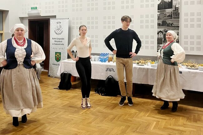 Na zakończenie przyszła pora na pyszny poczęstunek, który przygotowało Koło Gospodyń Wiejskich w Samostrzelu. Młodzież mogła skosztować polskich smaków i porozmawiać o swoich wrażeniach. Na zakończenie wszyscy przybyli otrzymali drobne upominki od Wójta.