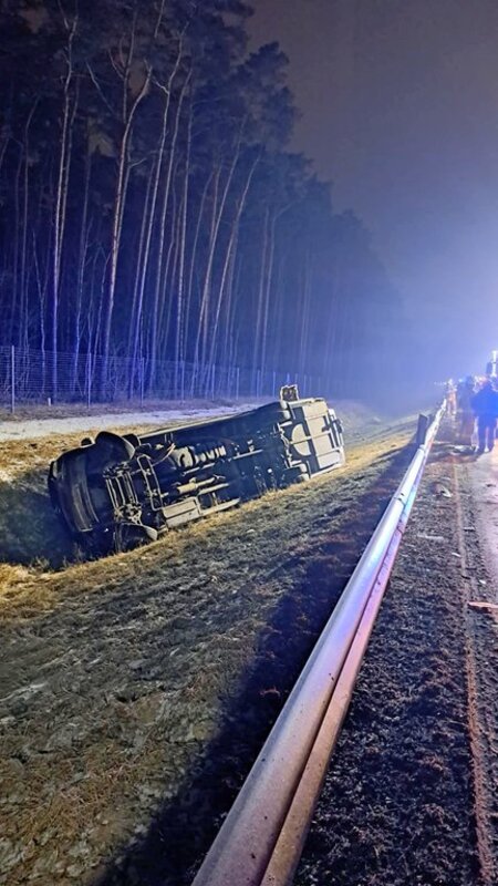 Dziś w godzinach nocnych na drodze# ekspresowej S5 w Lisim Ogonie samochód ciężarowy zderzył się z busem. Jedna osoba została ranna.