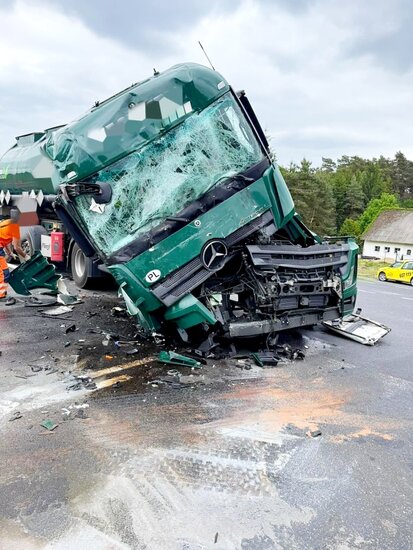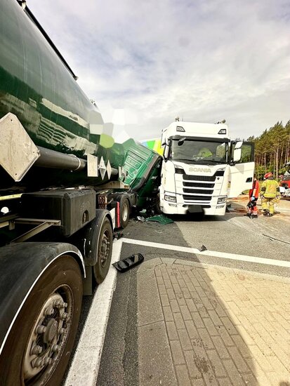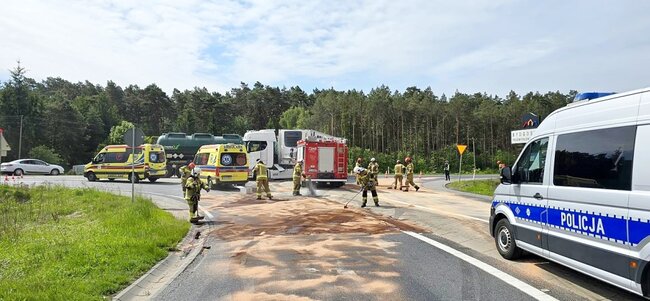 Zderzenie dwóch ciężarówek. Utrudnienia na krajowej dziesiątce