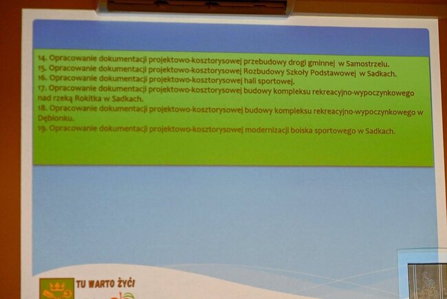 W dalszej części spotkania głos zabrał wójt gminy Sadki Michał Piszczek. Zaprezentował on przygotowaną prezentację przedstawiającą inwestycje zrealizowane w minionym roku oraz przedsięwzięcia planowane na 2026 rok. Wystąpienie stało się punktem wyjścia do dyskusji o rozwoju gminy i oczekiwaniach mieszkańców, których reakcja była natychmiastowa - zwrócenie uwagi na brak inwestycji w samym Śmielinie.