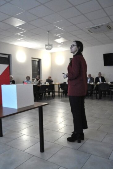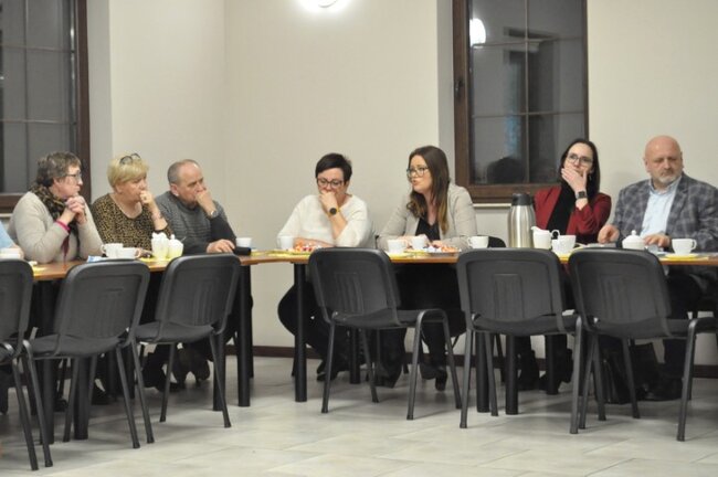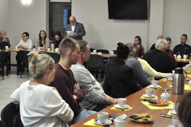 Następnie kierownik Gminnego Ośrodka Pomocy Społecznej w Sadkach, Katarzyna Nowak, przedstawiła działalność placówki oraz programy, w których mieszkańcy mogą wziąć udział. Wójt Michał Piszczek omówił temat gospodarowania odpadami w gminie, wskazując związane z tym problemy i planowane zmiany, w tym m.in. godziny otwarcia PSZOK.