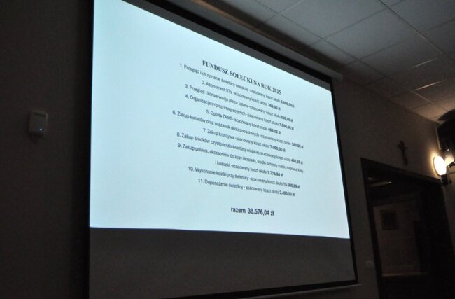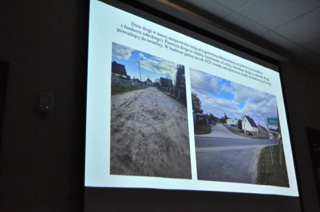 W efekcie zdecydowano o przejściu do dalszej części zebrania i powrocie do wyboru sołtysa na jego zakończenie. W międzyczasie kierownik referatu inwestycji w sadkowskim urzędzie, Beata Przywecka, przedstawiła prezentację ukazującą zrealizowane w 2025 roku inwestycje na terenie gminy oraz plany na bieżący rok.