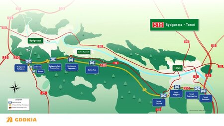 Kontrakty na projekt i budowę drogi ekspresowej S10 od węzła Bydgoszcz Południe do węzła Toruń Południe o długości 50 km wraz z 5-kilometrowym odcinkiem DK25 mają łączną wartość ponad 1,4 mld zł. W ramach inwestycji powstanie pięć nowych węzłów na S10, dwa na DK25, a trzy funkcjonujące już na S10 zostaną rozbudowane. Dodatkowo powstaną dwie pary Miejsce Obsługi Podróżnych (w Emilianowie i Cierpicach), Obwód Utrzymania Drogi (Makowiska), a także m.in. liczne przejścia dla zwierząt. Oddanie do ruchu pierwszych fragmentów planujemy przed końcem 2026 r., a całą trasę rok później.
