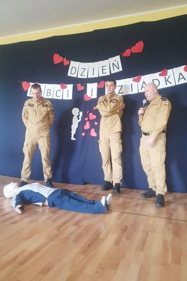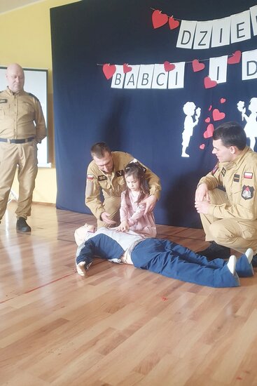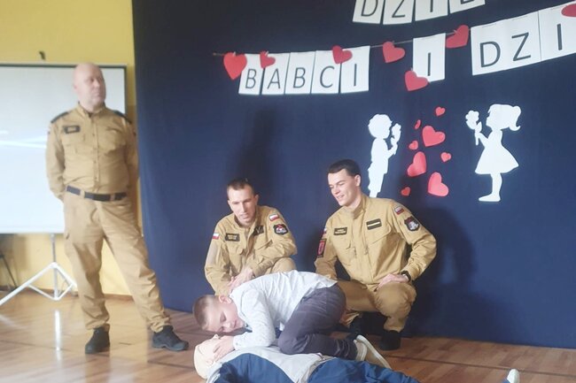 Nie obyło się bez niespodzianki w postaci gości specjalnych – strażaków z Państwowej Straży Pożarnej w Nakle nad Notecią, którzy przybyli do nas na zaproszenie Pani Prezes Mileny Kapicy. Panowie szczegółowo omówili kwestie czujników tenku węgla, istotę ich montowania oraz konsekwencje zatrucia czadem. Następnie przyszedł czas na instruktaż pierwszej pomocy- tego nigdy za wiele! Nasi uczniowie i przedszkolaki mieli okazję osobiście przećwiczyć resuscytację na fantomie przywiezionym przez strażaków.