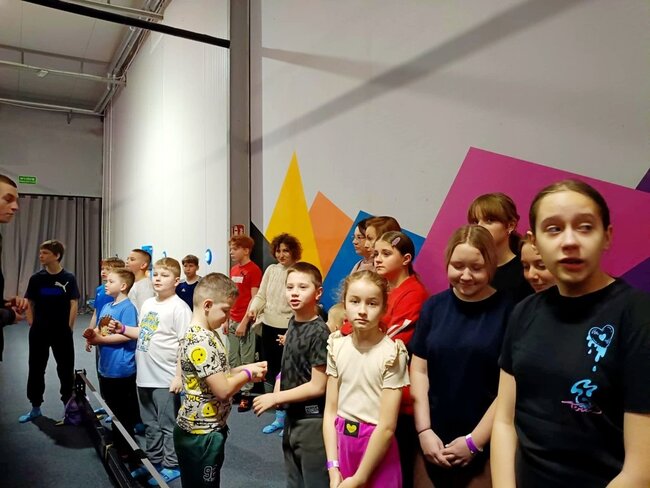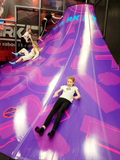 Celem wyprawy był park trampolin- Park 17, gdzie na uczestników czekała solidna dawka ruchu i dobrej zabawy! Młodsi uczestnicy mogli do woli korzystać z Małpiego Gaju, natomiast na starszych czekał basen z gąbkami, ściana wspinaczkowa oraz wiele innych atrakcji. Skoki i akrobacje sprawiły, że uśmiechy nie schodziły z twarzy dzieci. W drodze powrotnej zrobiliśmy jeszcze przystanek na obiad w McDonald's — bo po tylu atrakcjach apetyt dopisywał wszystkim!