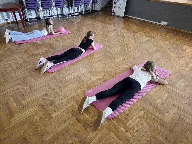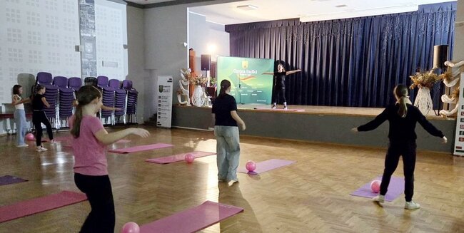 Melodie wpadające w ucho sprawiały, że kolejne zadania były wykonywane z większym zaangażowaniem. Rozciąganie pozwalało na pracę nad mięśniami, o których zapominamy w ciągu dnia. Zajęcia systematycznie powtarzane będą idealnym pretekstem do wypracowania nawyku ćwiczenia.