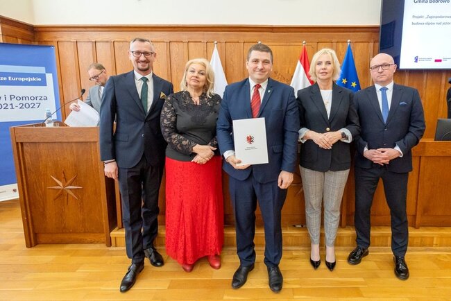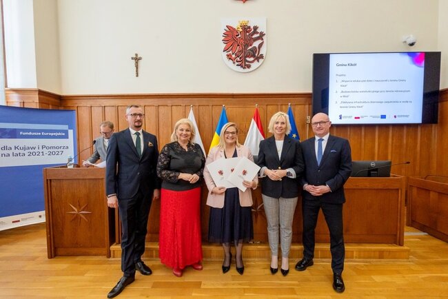 Czterdzieści umów o finansowanie #projektów o łącznej wartości 44 mln złotych odebrali w piątek (13 marca) w Urzędzie Marszałkowskim przedstawiciele beneficjentów naszego programu regionalnego Fundusze Europejskie dla Kujaw i Pomorza (FEdKP). Tym razem uruchamiamy środki m.in. na odnowę przestrzeni publicznej, gospodarkę wodną, inwestycje proekologiczne, uzbrojenie terenów inwestycyjnych i działania służące podnoszeniu poziomu kształcenia. W uroczystym spotkaniu uczestniczyli członek zarządu województwa Dariusz Kurzawa i członek zarządu województwa Marek Wojtkowski oraz przewodnicząca sejmiku województwa Elżbieta Piniewska i wiceprzewodnicząca sejmiku Katarzyna Lubańska.