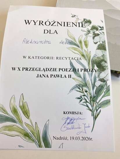 Od 10 lat# ZSCKR w Nadrożu jest organizatorem konkursu recytatorskiego poświęconego poezji Papieża- Polaka.