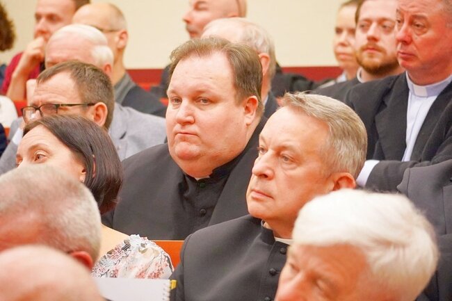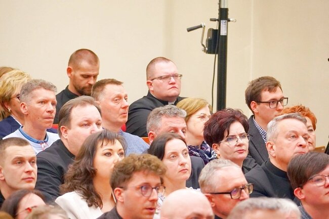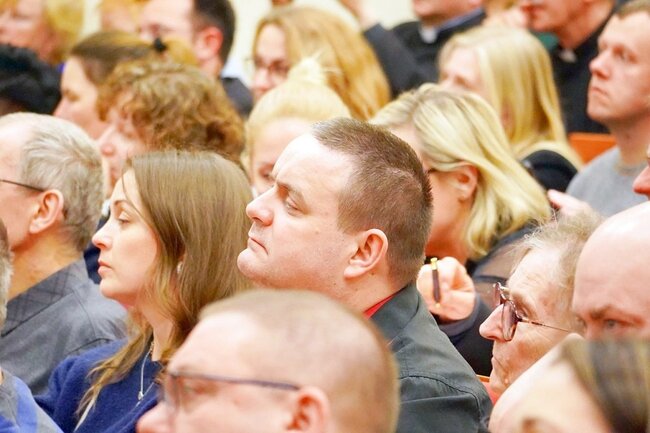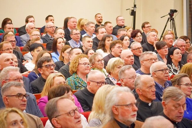 To właśnie na odnowę relacji – jak dodał ks. Karol Rawicz-Kostro – wskazało 90 procent osób, które na podstawie ankiet uczestniczyły w badaniach. – Już 11 kwietnia zapraszamy do tej auli na warsztaty dla animatorów i sekretarzy parafialnych grup synodalnych – dodał, rysując trzy fazy, które złożą się na przeprowadzenie synodu. Pierwsza z nich będzie miała charakter duszpasterski, druga legislacyjny i ostatnia – sesji plenarnych. Również w pierwszej połowie roku biskup powoła komisje i podkomisje, które zajmą się poszczególnymi zagadnieniami. – Zależy mi, by nie traktować I Synodu Diecezji Bydgoskiej fasadowo, że biskup wyznacza nowe zadanie. To zaproszenie do współodpowiedzialności za życie naszej diecezji, do otwartości na Ducha Świętego, a synod daje taką możliwość. Chciałbym, żeby się wydarzyło wielkie dobro dla naszej diecezji. Chodzi o spotkanie z Duchem Świętym, drugim człowiekiem, we wspólnocie – mówił bp Krzysztof Włodarczyk.