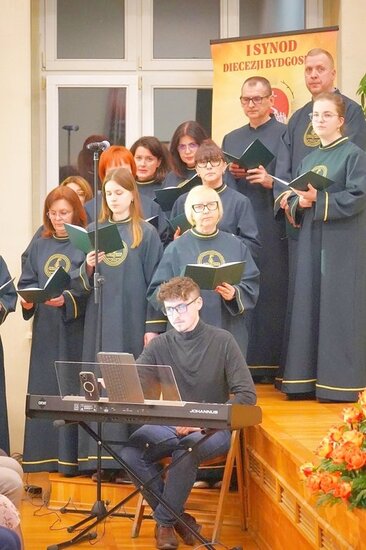Ducha Świętego przywoływano podczas Nieszporów, które pod kierunkiem ks. Łukasza Kucharskiego poprowadziła schola liturgiczna „Cantemus Domino” przy Centrum Formacji Liturgicznej Diecezji Bydgoskiej. Poprzedziło je zapalenie przez biskupa świecy synodu. Takie same trafią do wszystkich parafii i będą nieodłącznym elementem inauguracji synodu w poszczególnych wspólnotach, które zaplanowano na Niedzielę Bożego Miłosierdzia – 12 kwietnia.