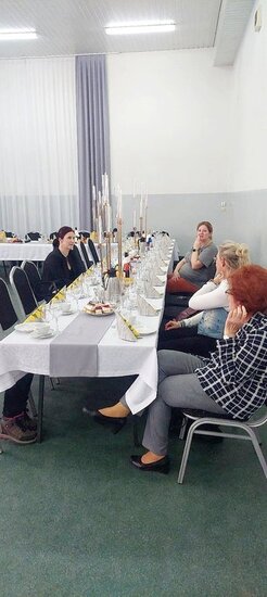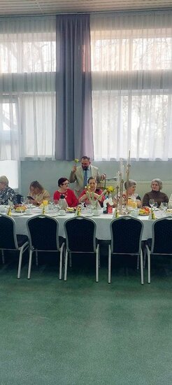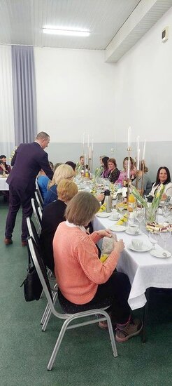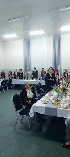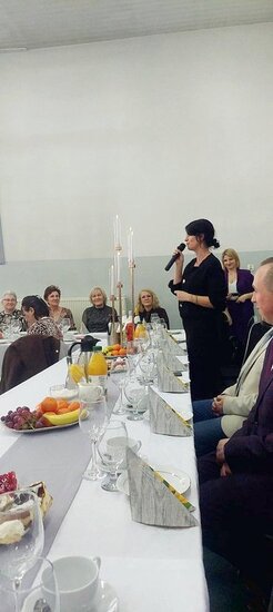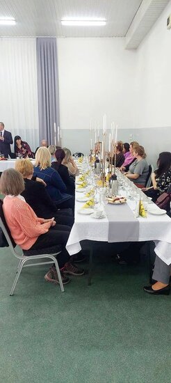 Uroczyste świętowanie rozpoczęło się od krótkich przemów oraz życzeń składanych wszystkim Paniom przez zaproszonych gości, wśród których znaleźli się: Sołtys wsi Dębowo - Michał Olejniczak, Proboszcz parafii pw. Św. Michała Archanioła w Dębowie - ks. kanonik Krzysztof Wiśniewski, Przewodniczący Rady Gminy Sadki - Pan Andrzej Niedbała, Przewodnicząca Koła Gospodyń Wiejskich w Dębowie - Pani Lidia Krzemkowska oraz Dyrektor Gminnej Biblioteki Publicznej w Sadkach - Pani Joanna Brzozowska. Każda ze zgromadzonych w świetlicy pań otrzymała również po symbolicznym kwiatku od Sołtysa Michała Olejniczaka oraz Przewodniczącego Rady Gminy Sadki, Pana Andrzeja Niedbały.