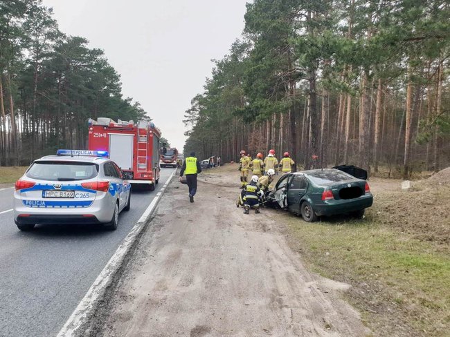 Do zdarzenia doszło po godzinie 15.00. W wyniku zderzenia jedno z aut dachowało i przewróciło się na bok. Pojazdami podróżowało łącznie sześć osób. Na miejscu obecne były służby ratunkowe. Dwie osoby wymagały hospitalizacji. Droga na czas wypadku była zablokowana.