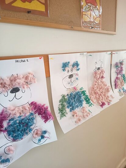 Powstały niezwykle miękkie, kolorowe misie, które dumnie ozdobiły szkolną galerię prac.