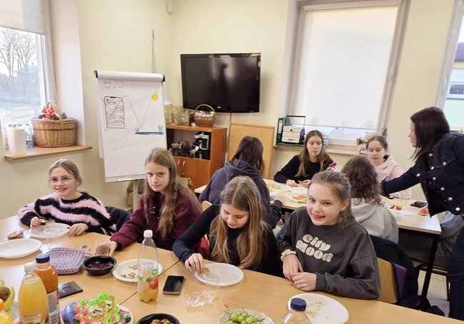 Prowadząca spotkanie podkreślała jak ważne jest stosowanie mocnych haseł. A z internetu musimy korzystać z pełną świadomością. Nie zabrakło smacznego zdrowego poczęstunku podczas zajęć.