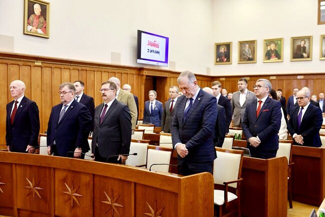 Sesja rozpoczęła się od ślubowania nowej radnej #województwa Katarzyny Stranz-Kai, która objęła mandat po zmarłym niedawno prof. Jacku Woźnym. Minutami ciszy radni uczcili poległych w wojnie na Ukrainie i zmarłego niedawno związanego z naszym regionem zastępcę szefa Inspektoratu Wsparcia Sił Zbrojnych gen. Piotra Wagnera. Sejmik przyjął harmonogram prac nad strategią rozwoju województwa do 2035 roku.