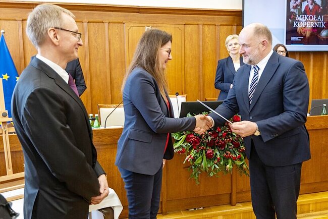Prof. Stanisław Roszak i prof. Agnieszka Wieczorek#, historycy z Uniwersytetu Mikołaja Kopernika, autorzy książki „Mikołaj Kopernik życie po życiu. Osiemnastowieczne kręgi pamięci”, są laureatami dorocznej Nagrody Marszałka Województwa Kujawsko-Pomorskiego im. Profesora Stanisława Salmonowicza, przyznawanej za wyróżniającą się walorami naukowymi publikację z dziedziny historii prawa i ustroju, kultury i historii najnowszej. Podczas dzisiejszego posiedzenia sejmiku województwa nagrodę wręczył marszałek Piotr Całbecki.