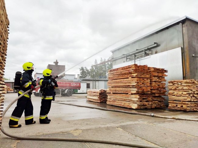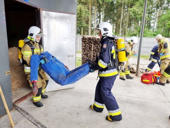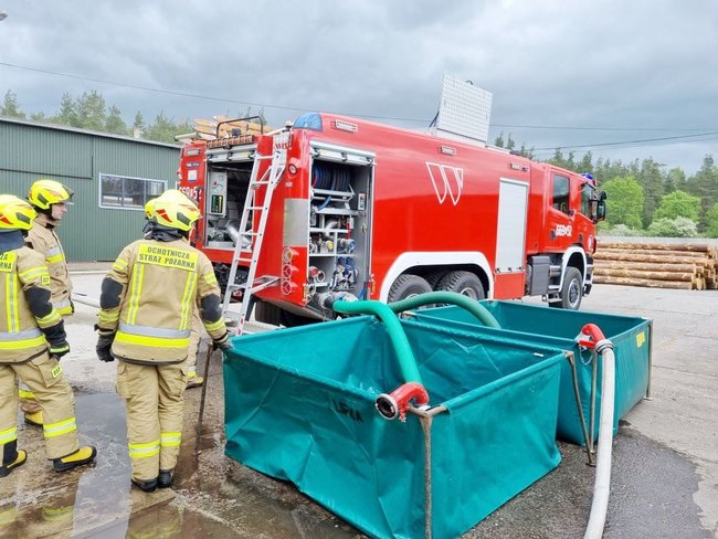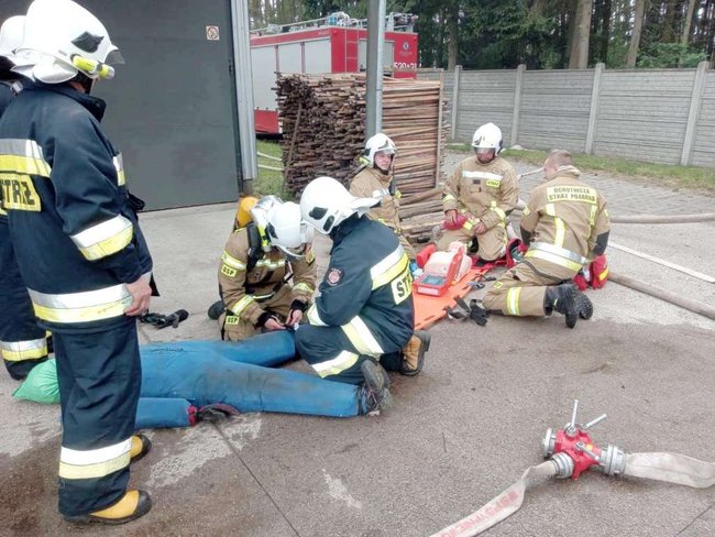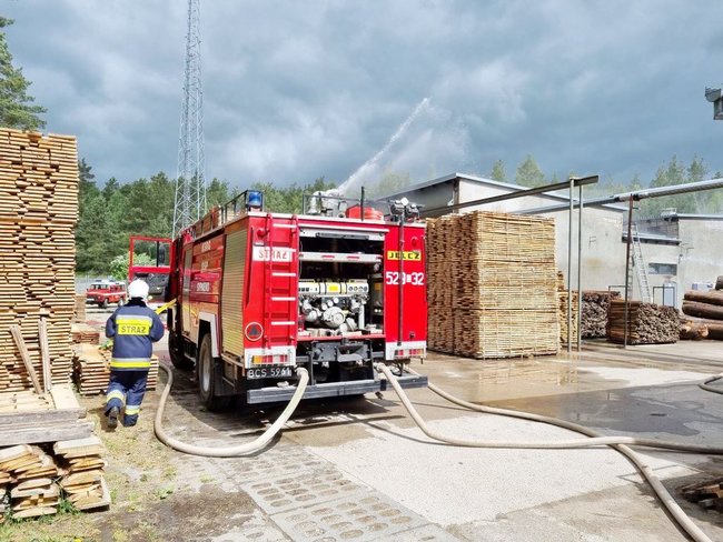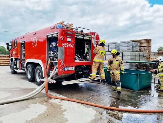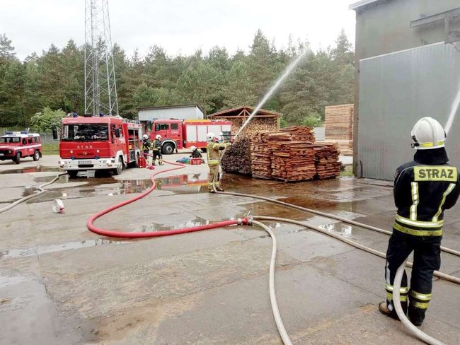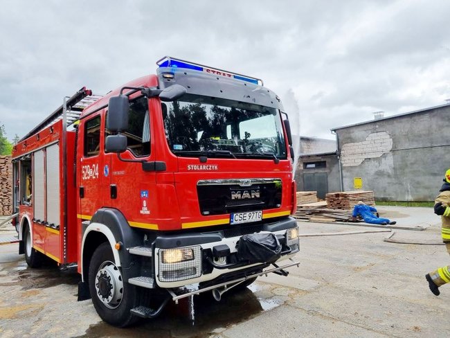 Płonął tartak. Z budynku strażacy wynieśli poszkodowanego mężczyznę