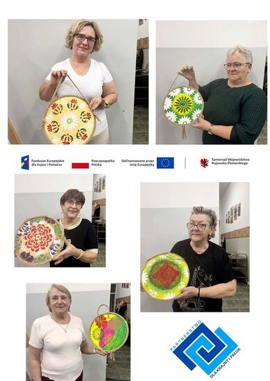 Panie pracowały na okrągłych podobraziach, które stanowiły idealną bazę do powstania pięknych kompozycji. Do malowania wykorzystano akrylowe farby oraz gąbeczki, które pozwoliły uzyskać ciekawe efekty struktury. Efektem spotkania były kolorowe obrazy, które zachwycały swoją różnorodnością oraz starannością wykonania.