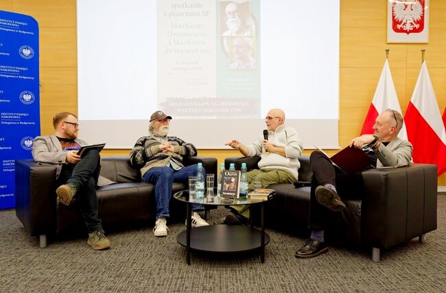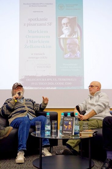 W czwartek odbyło się pierwsze spotkanie# w ramach nowego cyklu „Pogranicza historii”. Gośćmi byli pisarze science fiction Marek Oramus i Marek Żelkowski, a tematem rozmowy była „Fantastyka a PRL”.