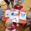 Przy pierwszym zadaniu plastycznym dzieci chętnie malowały kartki pędzlami. Po wykonaniu tego zadania ukazały się piękne obrazki.