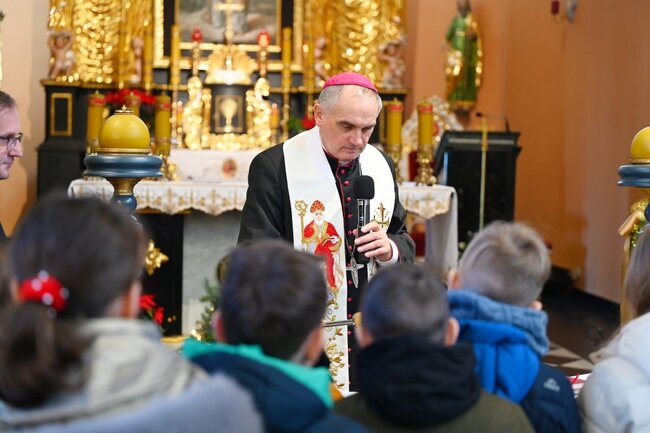 W kolędowaniu uczestniczyły dzieci, wśród nich te, które przystąpią do pierwszej Komunii świętej. Tym bp Krzysztof Włodarczyk poświęcił książeczki modlitewne, a wszystkim chętnym udzielił indywidualnego błogosławieństwa.