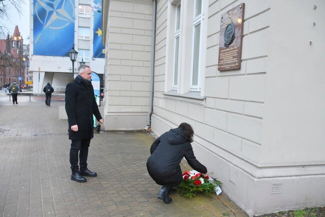 Współtwórcy Niepodległej Polski oddał hołd dyrektor Oddziału IPN w Gdańsku dr Marek Szymaniak i naczelnik delegatury IPN w Bydgoszczy Edyta Cisewska. Złożyli kwiaty pod tablicą upamiętniającą wizytę w 1927 roku Romana Dmowskiego w Bydgoszczy, która znajduje się na budynku Kujawsko-Pomorskiego Centrum Kształcenia Nauczycieli przy ulicy Jagiellońskiej 9.