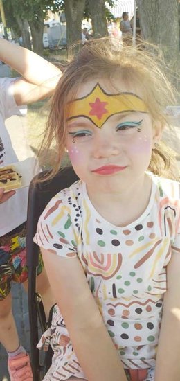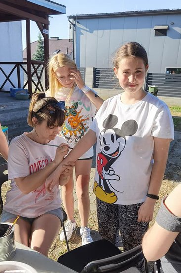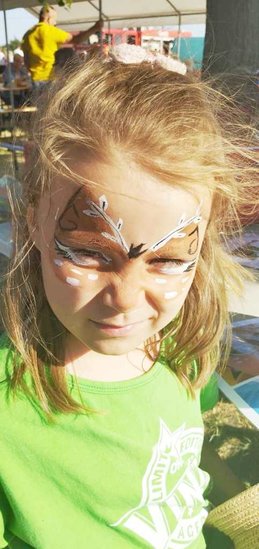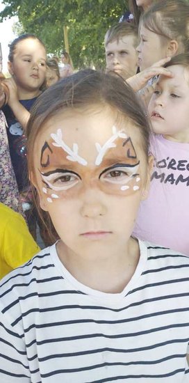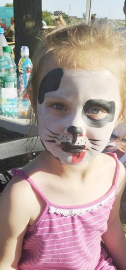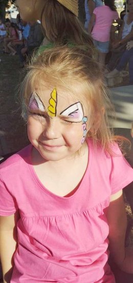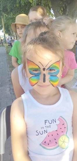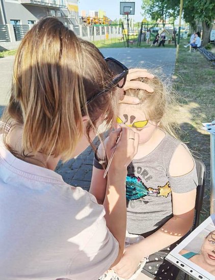 Pani Magdalena Sobiecka z pędzlem w ręku tworzyła piękne malunki na dzieciecych buziach. Żyrafa, kolorowy motyl, a może magiczny jednorożec? Wszystkie pomysły zostały sprawnie zrealizowane.