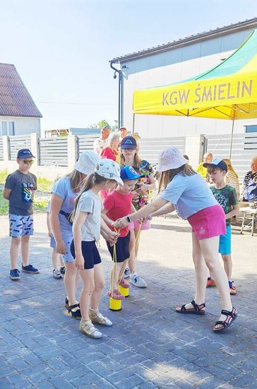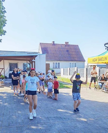 Gry i zabawy poprowadziła Pani Monika Mitek. Wyścigi w rzędach, zabawy z chustą animacyjną i wspólne tańce. Dzieci w Śmielinie zdecydowanie lubią się bawić.