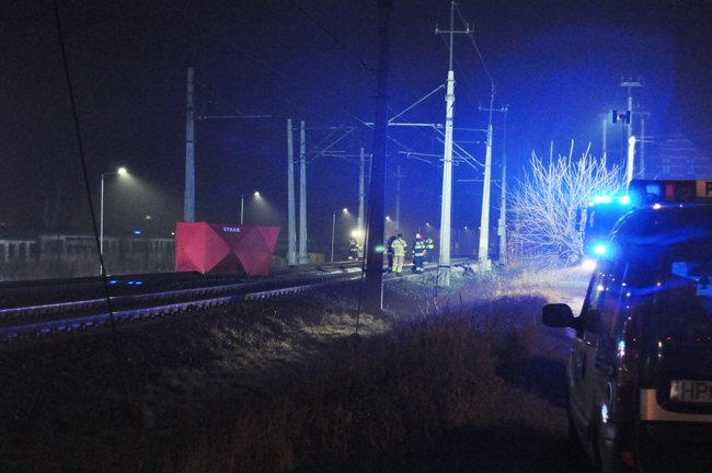 samobójstwo. Na miejscu pracują zastępy straży pożarnej, policja, Służba Ochrony Kolei oraz prokurator. Występują utrudnienia w ruchu drogowym