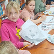 Młodsze dzieci miały za zadanie narysować kotka, a jako pomoc wykorzystały tablicę, na której były pokazane poszczególne etapy tworzenia.