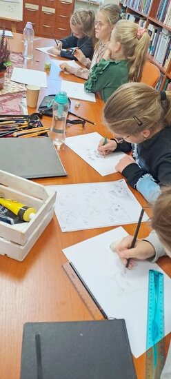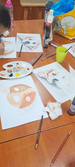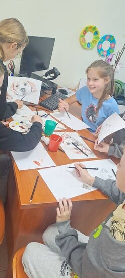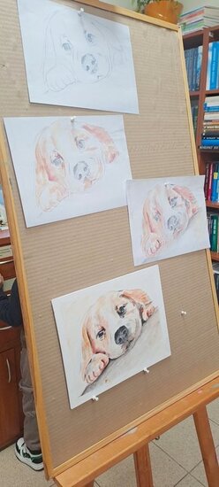 Starsza grupa skupiła się na tworzeniu portretu psa techniką mieszaną. Na początku zajęć omówiliśmy różne techniki artystyczne, które można zastosować w tym projekcie, takie jak akwarele, ołówek czy węgiel. Uczestnicy mieli okazję poeksperymentować z łączeniem różnych mediów, co pozwoliło im na odkrycie nowych możliwości wyrazu artystycznego.