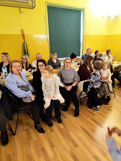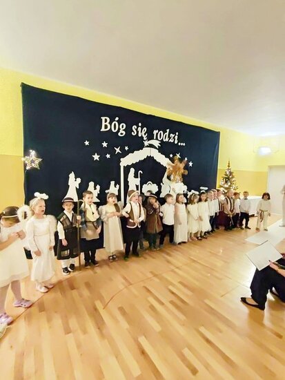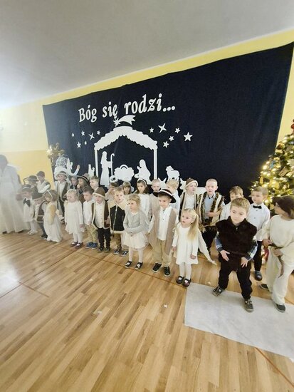 Dzieci z grupy "Sowy" i "Zajączki" z ogromnym zaangażowaniem zaprezentowały świąteczny program artystyczny, wprowadzając wszystkich w wyjątkowy, bożonarodzeniowy nastrój. Podczas jasełek mieliśmy przyjemność wysłuchać pięknego występu Igi Pstrągowskiej, która zagrała na skrzypcach. Jej występ był prawdziwą ozdobą naszych jasełek.