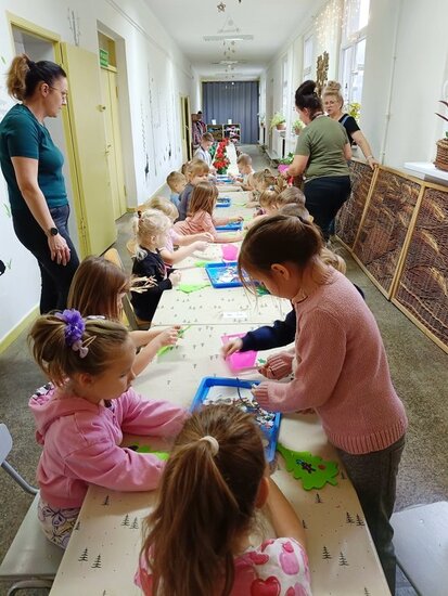 W części plastycznej tworzyliśmy za pomocą plasteliny piękne kolorowe bombki oraz choinkowe zawieszki świąteczne ozdobione diamencikami, które każde dziecko mogło zabrać do domu i powiesić w ulubionym miejscu.