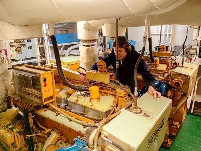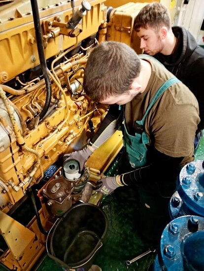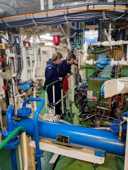 Ze względu na to, że Odra jest obecnie skuta lodem, młodzież nie może jeszcze realizować szkoleń nawigacyjnych. Ten czas uczniowie wykorzystują na intensywną pracę w maszynowni, gdzie pod okiem doświadczonych członków załogi zdobywają szlify zawodowe, poznają budowę i obsługę urządzeń okrętowych oraz doskonalą zasady bezpieczeństwa i pracy zespołowej.