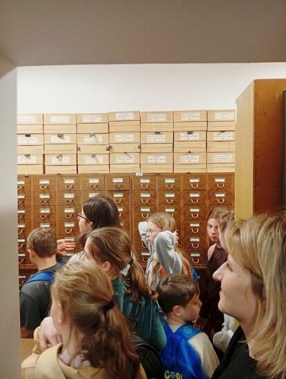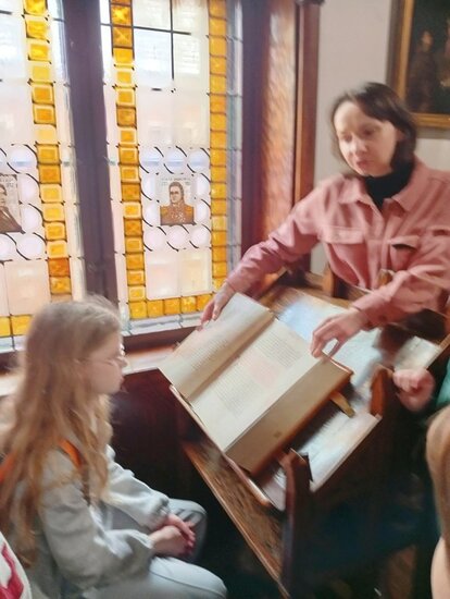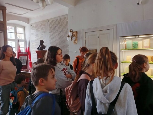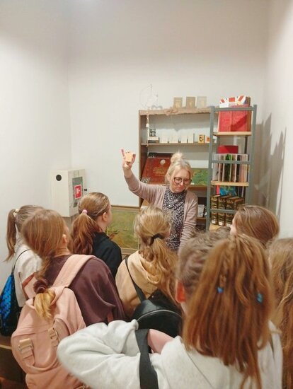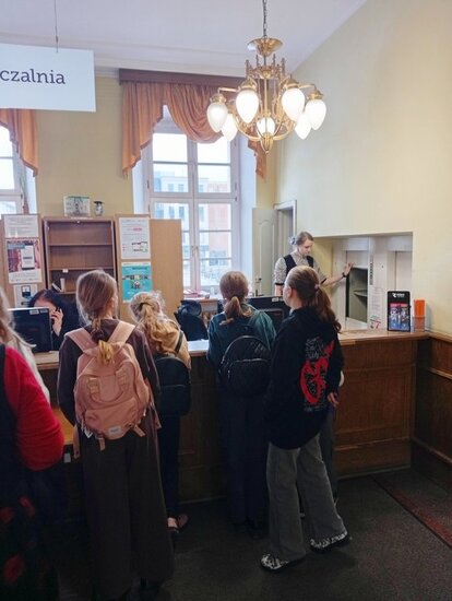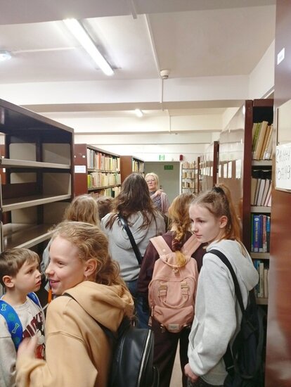 Po emocjonujących zajęciach udaliśmy się do Wojewódzkiej i Miejskiej Biblioteki Publicznej im. W. Bełzy w Bydgoszczy. Podzieleni na dwie grupy zwiedziliśmy zabytkową Bibliotekę Bernardynów oraz imponujący magazyn, w którym znajduje się aż 500 000 książek! Pani bibliotekarka zaprezentowała nam niezwykłe egzemplarze – od najmniejszych książeczek po te największe, a nawet książkę w formie… butelki!