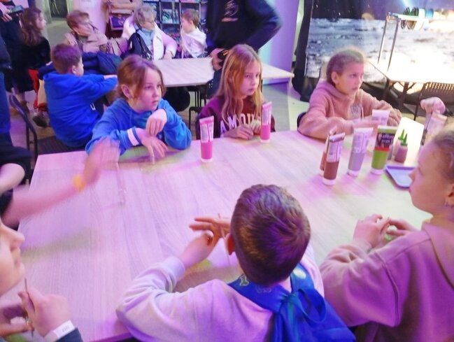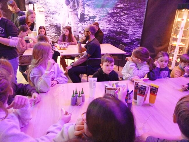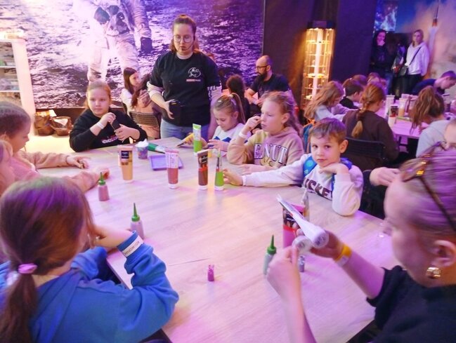 Na zakończenie warsztatów każde dziecko stworzyło własny „kosmos w słoiku” – pełen barw i gwiezdnego blasku, który stał się piękną pamiątką z tej międzyplanetarnej przygody.