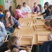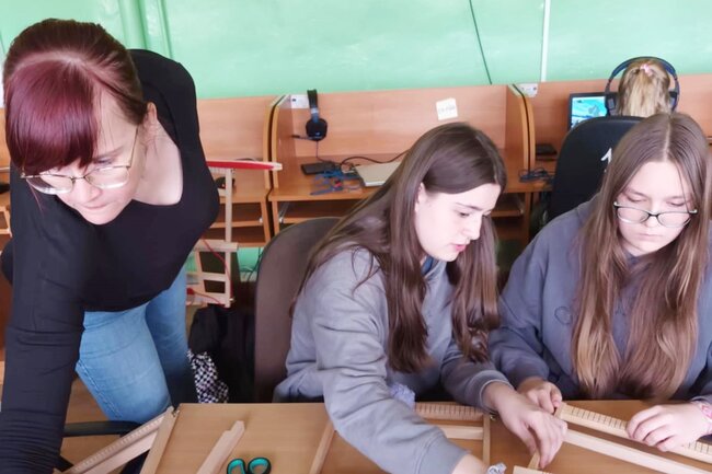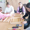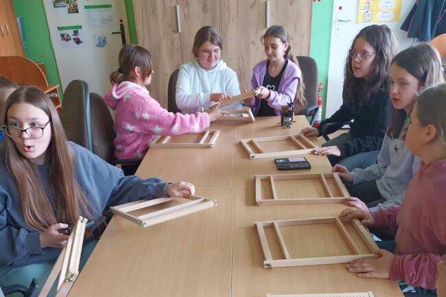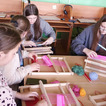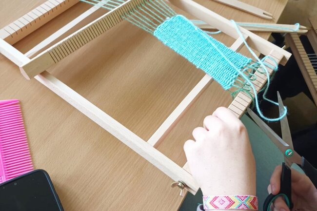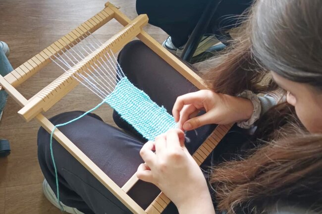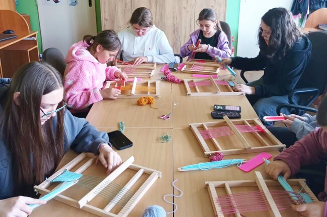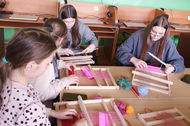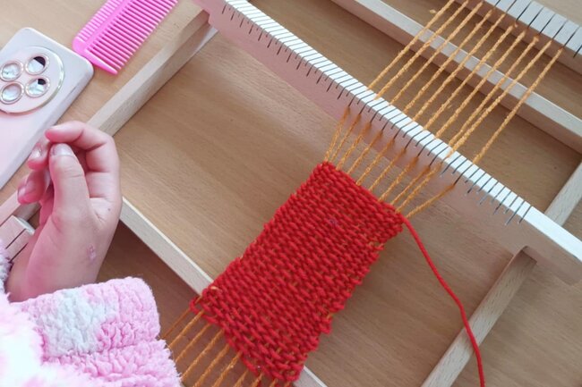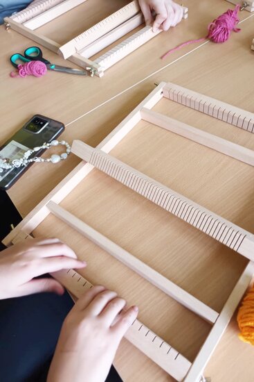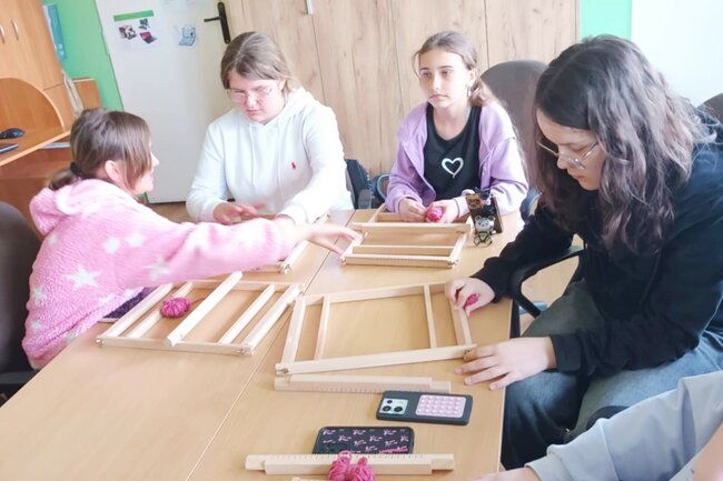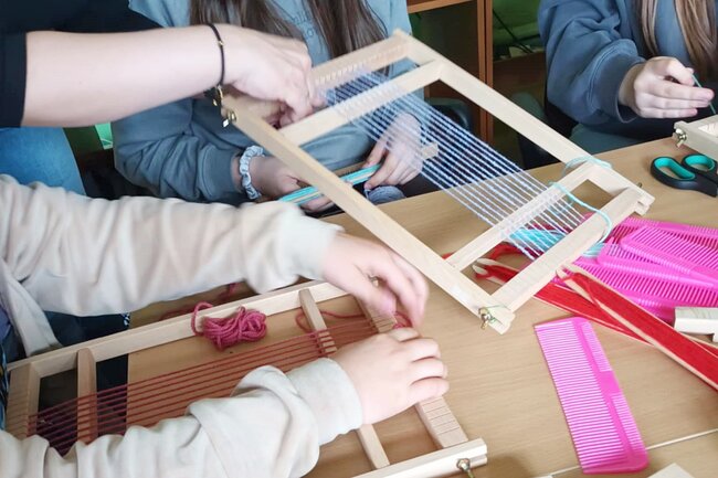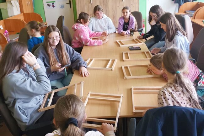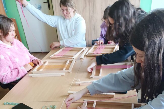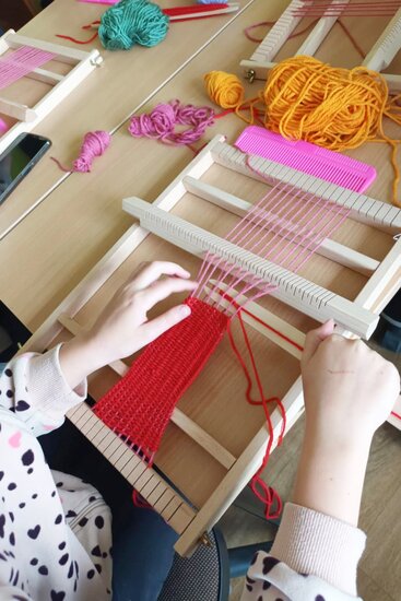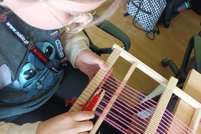 Dziewczyny wykonały swoje pierwsze kolorowe tkaniny, ucząc się przy tym podstawowego splotu.