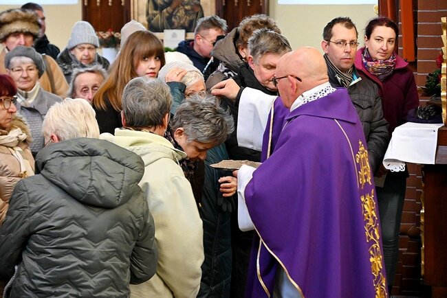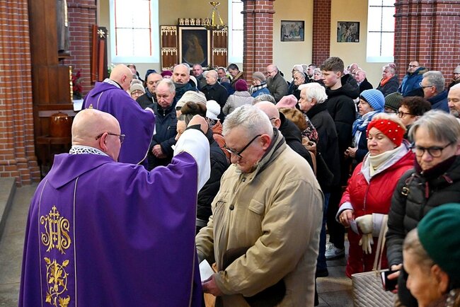 Podczas mszy świętej kapłani dokonali obrzędu posypania głów popiołem, czyniąc na czole wiernych znak krzyża. Towarzyszyły temu słowa przypominające o przemijaniu i potrzebie nawrócenia: „Prochem jesteś i w proch się obrócisz” lub „Nawracajcie się i wierzcie w Ewangelię”. Symboliczny gest ma przypominać o kruchości ludzkiego życia oraz wezwaniu do przemiany serca.