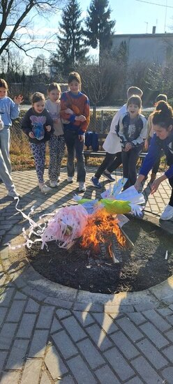 Na koniec, zgodnie z tradycją, spaliliśmy naszą Marzannę, którą wykonaliśmy w zeszłym tygodniu. Symbolizuje ona pożegnanie zimy i powitanie wiosny.