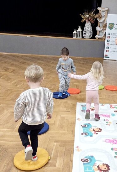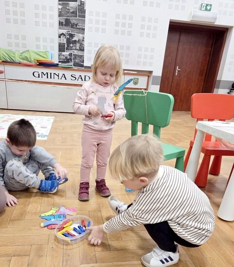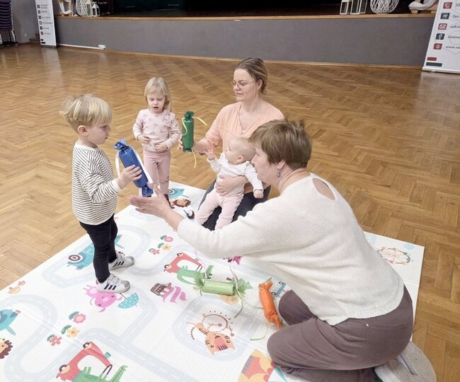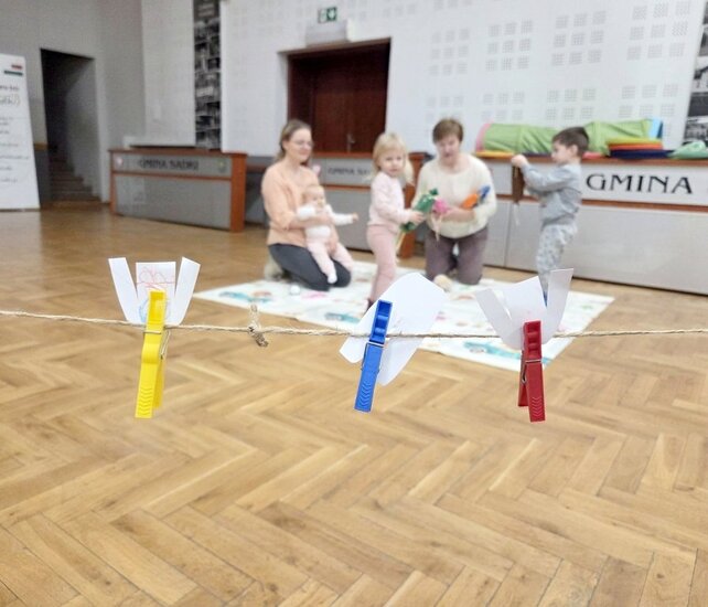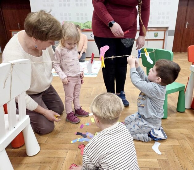 Nie zabrakło wspólnych piosenek i zabaw ruchowych. Dzieci bardzo chętnie wieszały na sznurkach papierowe skarpetki.