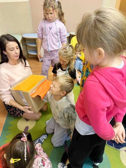 Na koniec, zorganizowaliśmy małą lekcję empatii, podczas której dzieci z zasłoniętymi oczami próbowały odgadnąć tylko przy pomocy dotyku jaki przedmiot znajduje się w pudełku. Było to dla nich bardzo pouczające doświadczenie!