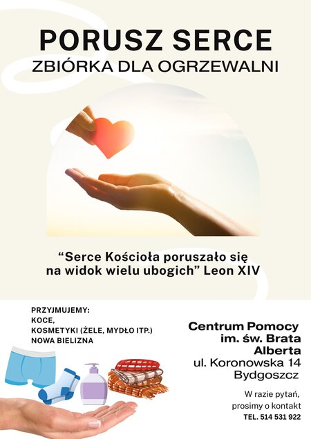 Zgromadzenie Sióstr Albertynek# Posługujących Ubogim wraz z Grupą Modlitewną św. Ojca Pio przy Parafii Świętego Antoniego z Padwy w Bydgoszczy, ogłaszają zbiórkę darów dla potrzebujących, korzystających z pomocy ogrzewalni przy Centrum Pomocy im. św. Brata Alberta (ul. Koronowska 14, Bydgoszcz).